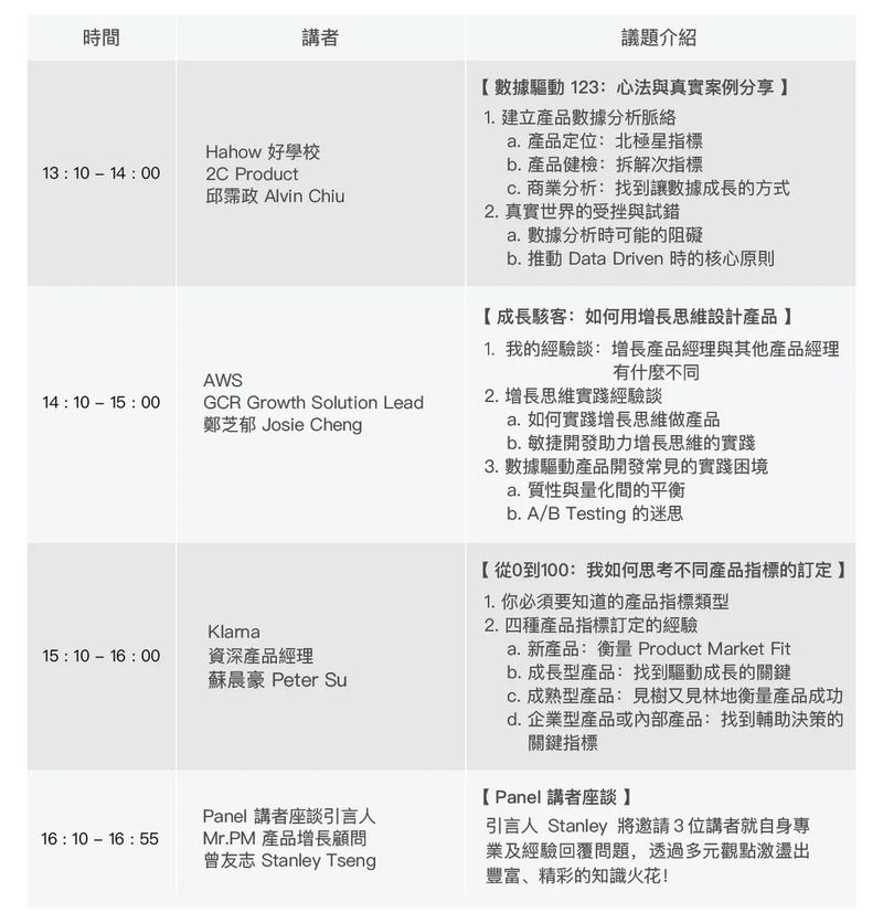 如果您是產品經理、營運決策者,或是負責產品優化的工作者們, 或是正在數據迷宮裡找不到前進的方向,希望聽聽實務經驗的分享, 10/30(六)歡迎一起來切磋交流!