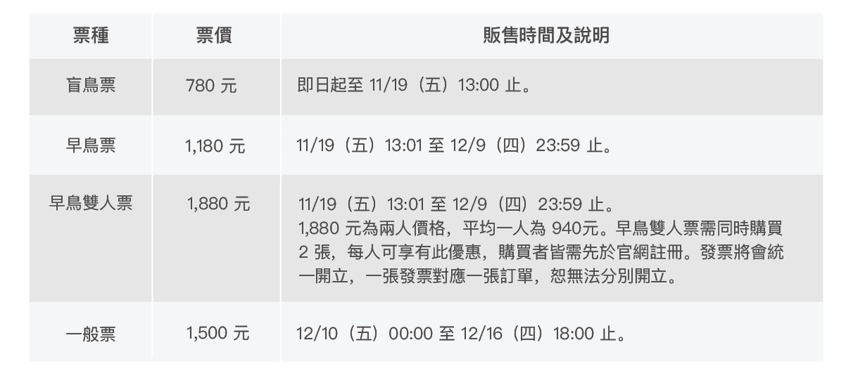 ▍票價及票種優惠