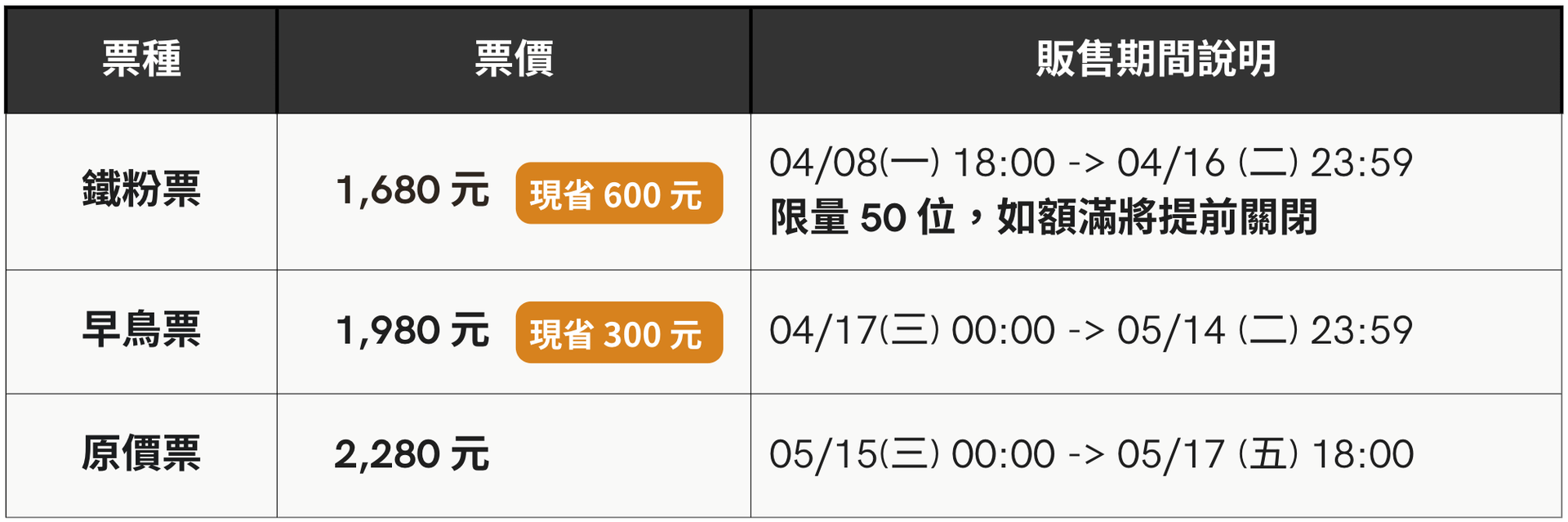 ▍票價及票種優惠
