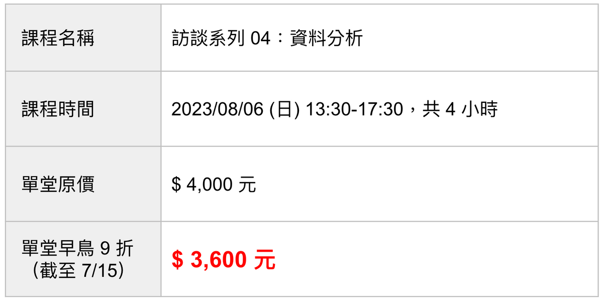 這堂課為 2023 年【使用者訪談系列課程】第 4 堂課,系列共有 4 堂課: