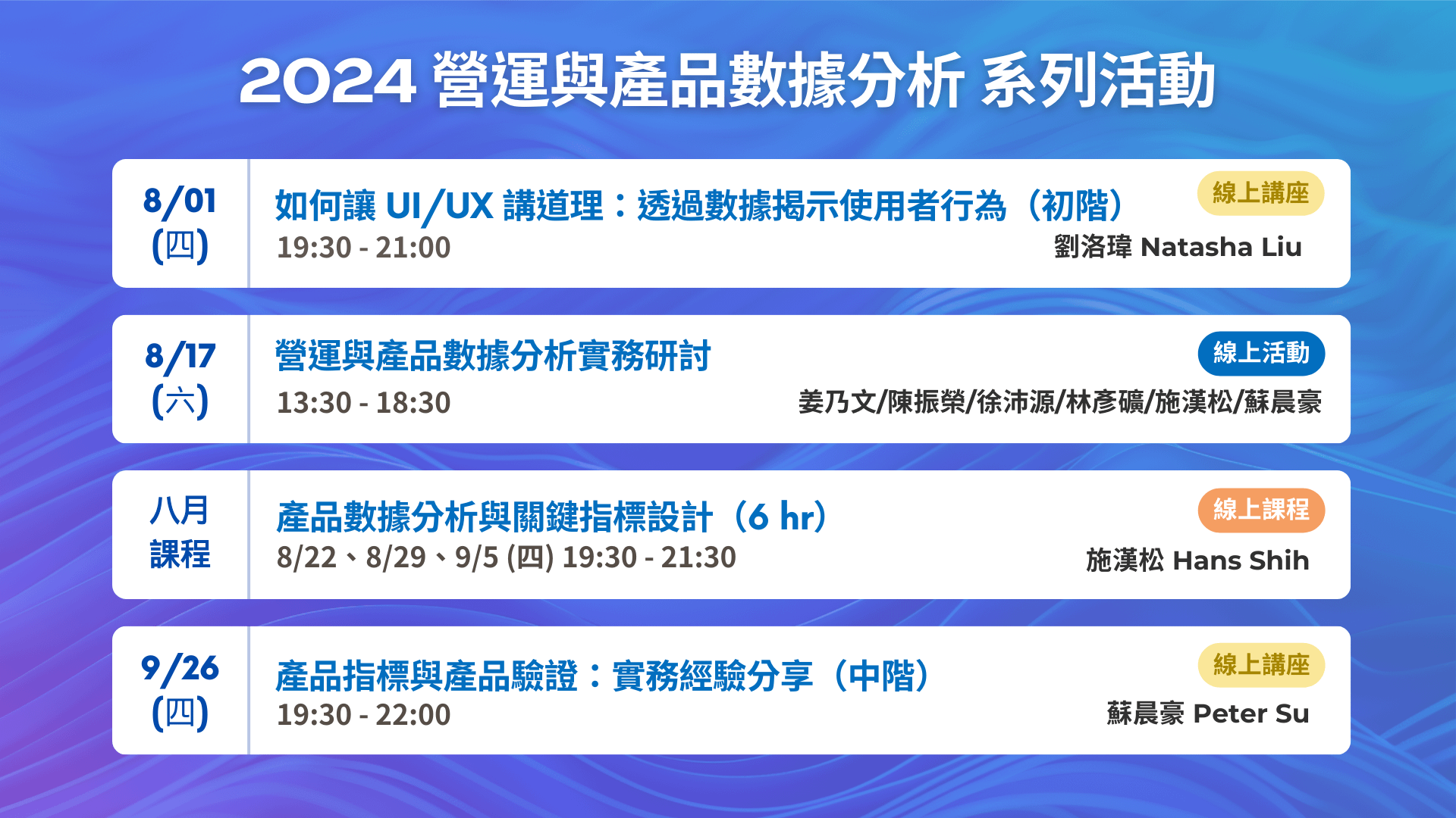 - 08/17 (六) 線上活動|營運與產品數據分析實務研討