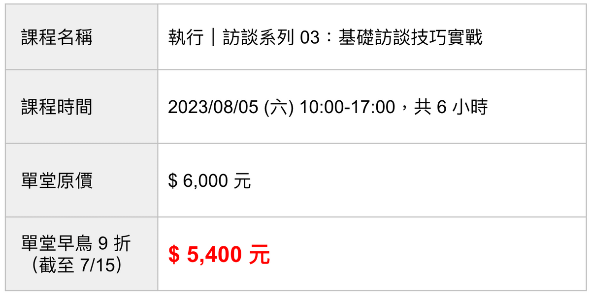 08/05 (六) 執行|訪談系列 03:基礎訪談技巧實戰
