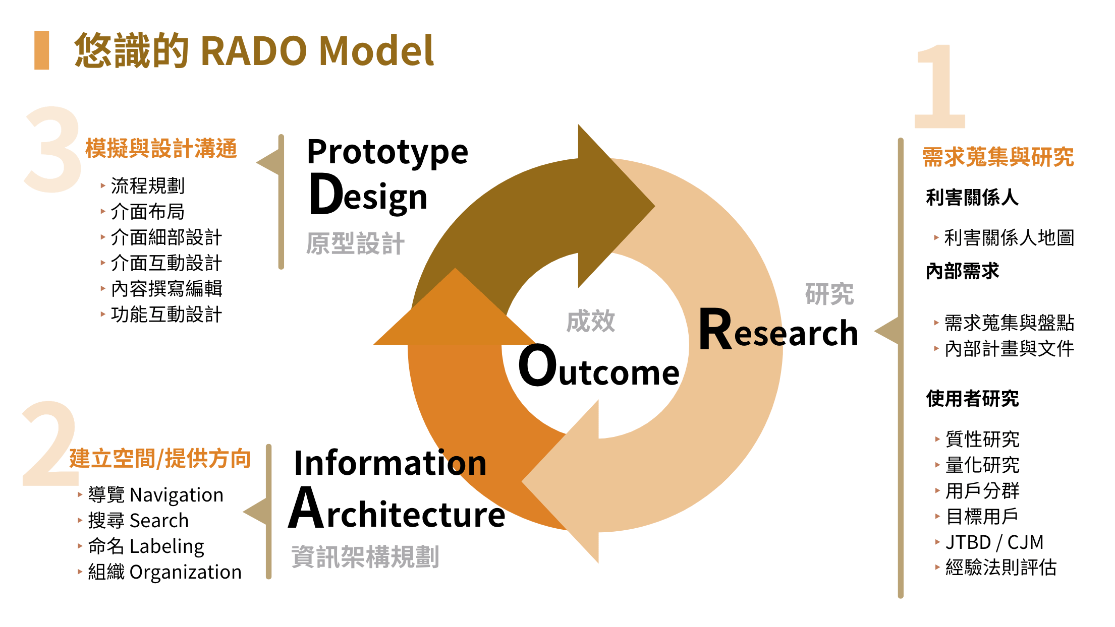 企業內訓由悠識數位創辦人 蔡明哲 Richard 領軍,推出全方位 UX 訓練解方,搭配獨創「RADO 模型」,從策略到執行、從研究到成效驗證一應俱全。